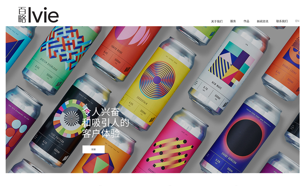 簡潔大方的網站風格營造出一個高端大氣的品牌網站形象,公司設計作品圖片為背景輪播圖,其包括耳熟能詳的KFC、必勝客、純甄等; 用lvie的超強實力征服瀏覽者,彰顯品牌的自信、強大與藝術。