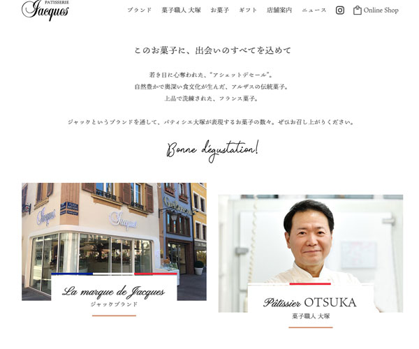 Jacques是一家制作蛋糕點心的店面,網(wǎng)站整體風(fēng)格較為簡潔明了,嚴(yán)謹(jǐn)?shù)膱D文排版與