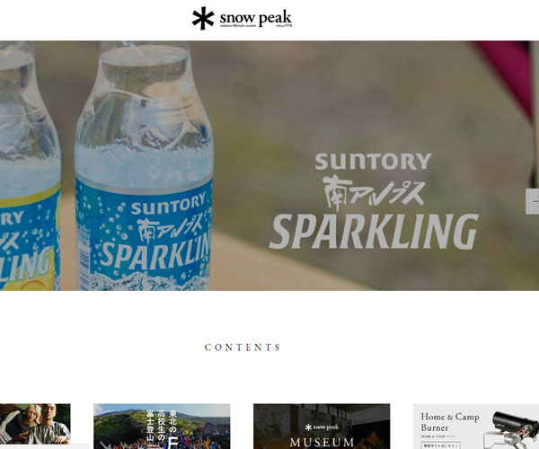 Snowpeak為客戶提供各類冬季野營相關項目,網站整體風格較為簡潔,logo的精心設計與
