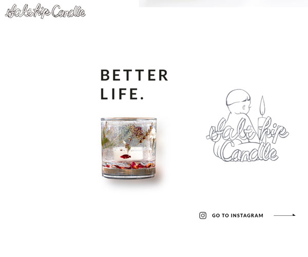 Salthip獨特的為蠟燭做藝術設計,網(wǎng)站的設計整體風格簡潔卻又顯得高端,