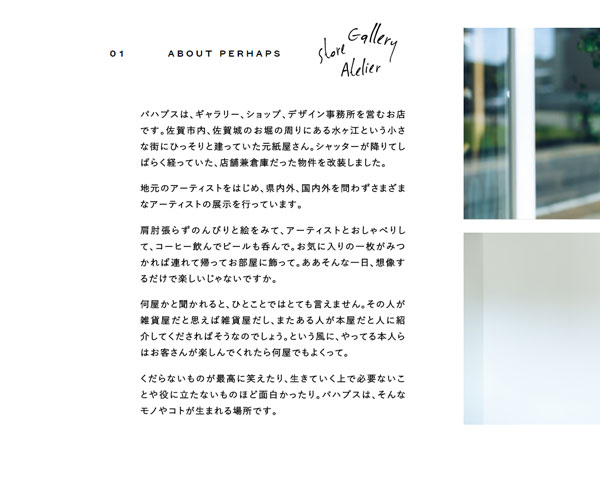 Perhaps是一家畫廊的展廳,網站的整體設計風格較為簡潔,簡單、清新的圖文排版形式