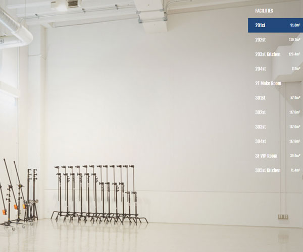 Kaigan公司是全國場地最大的拍攝場地之一,網站的設計風格較為簡潔,通過商務的藍色