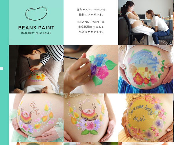 Beanspaint為孕婦畫人體彩繪,網站的整體建設風格較為獨特,左導航的點擊式交互,一張張精美
